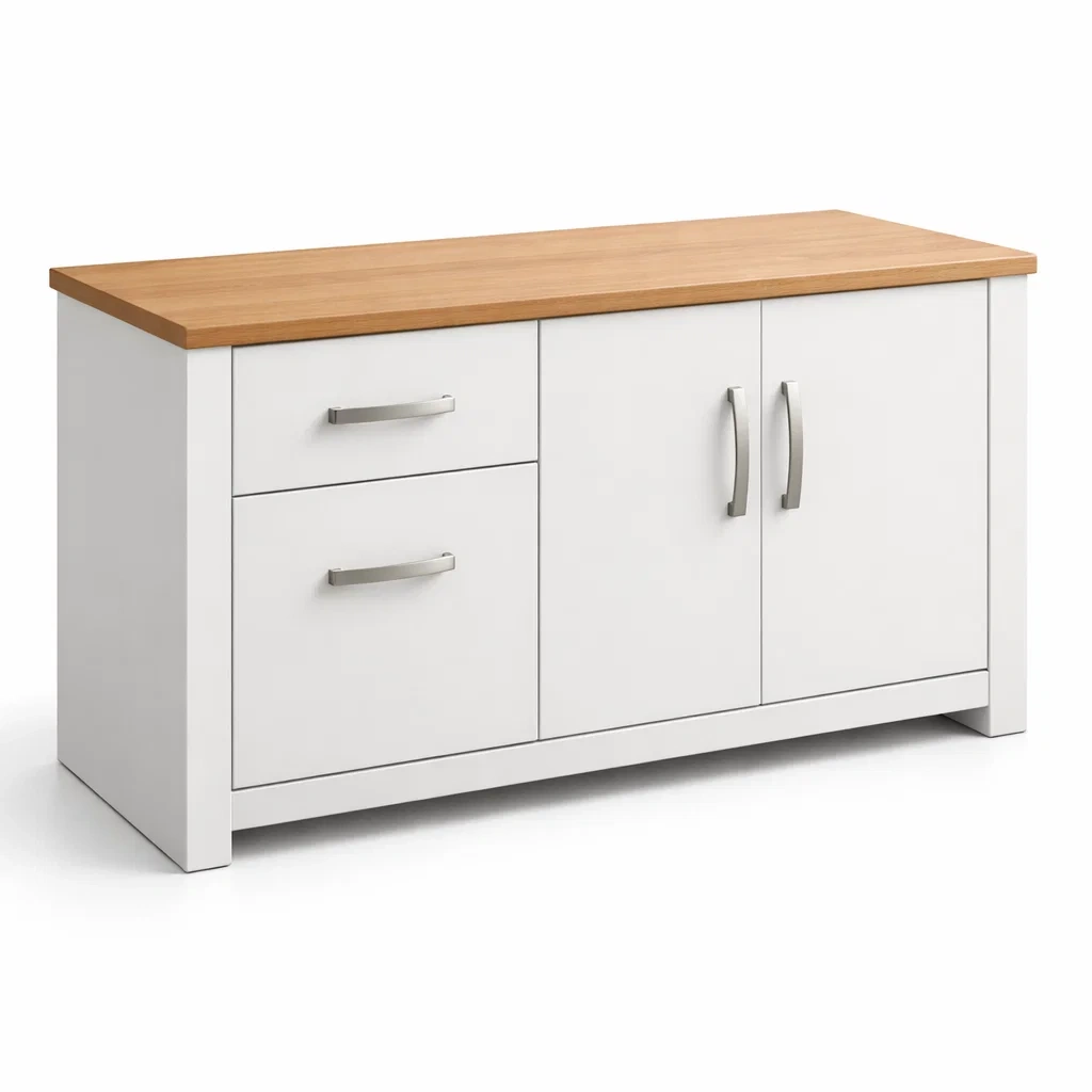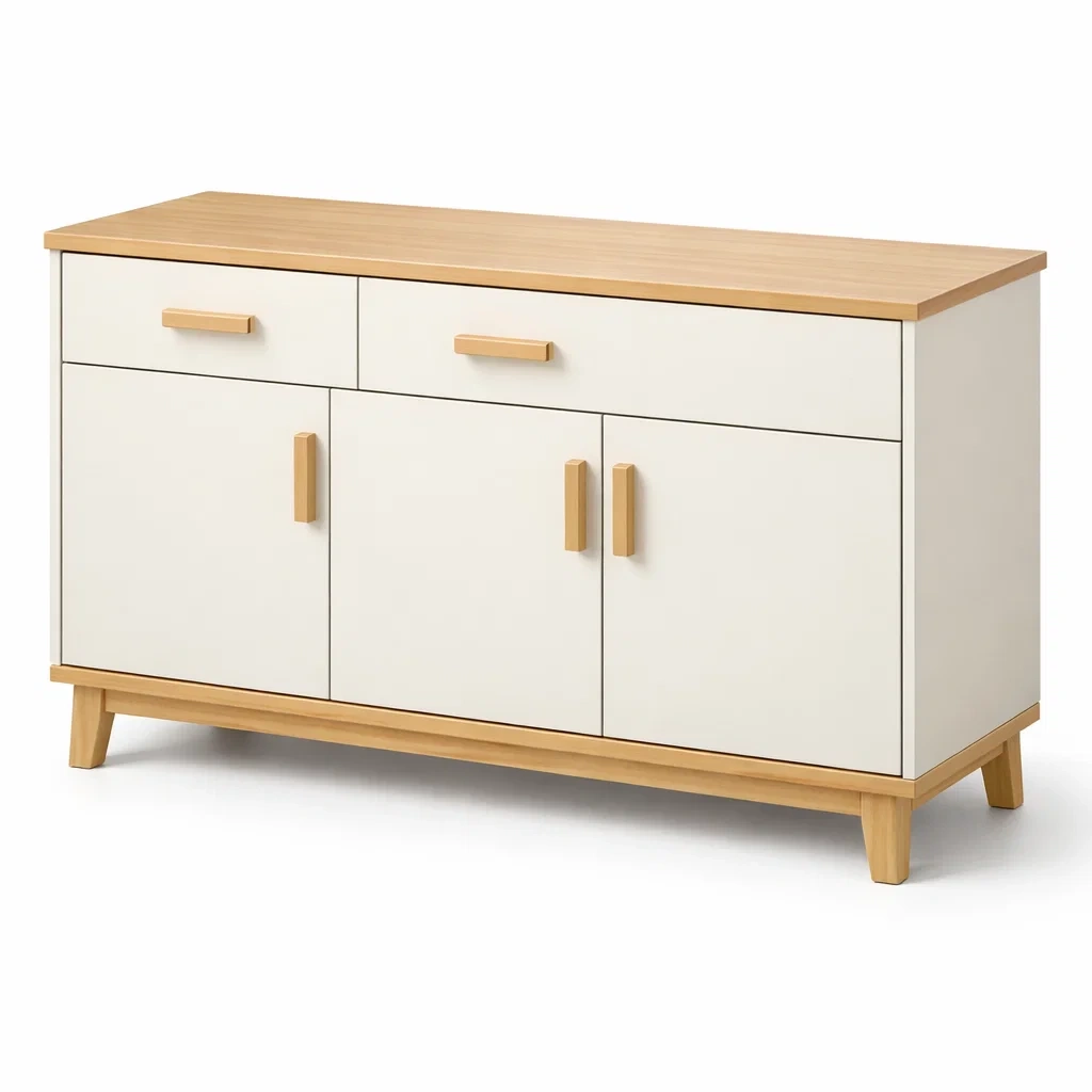 Buffet en bois clair et ivoire avec portes et tiroirs