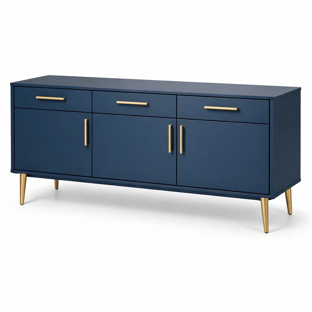 Buffet en bois avec poignées en métal, 2 tiroirs et 4 portes